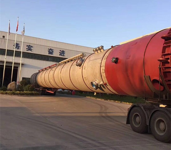 我公司制造重170噸,長45米,直徑3.6米無催化劑稀硝酸回收系統(tǒng)硝酸凈化反應(yīng)器(塔)制造完成,順利發(fā)往內(nèi)蒙。